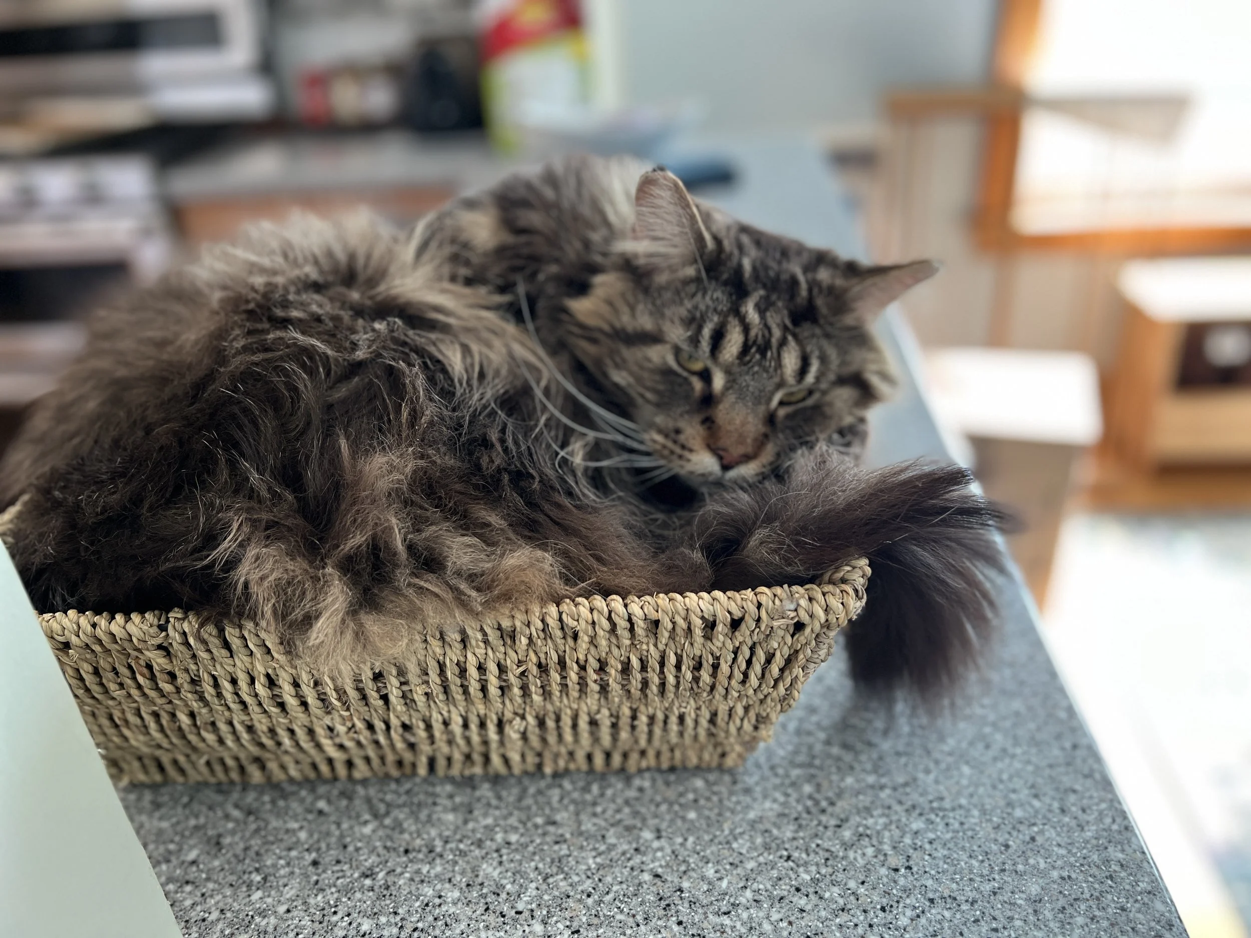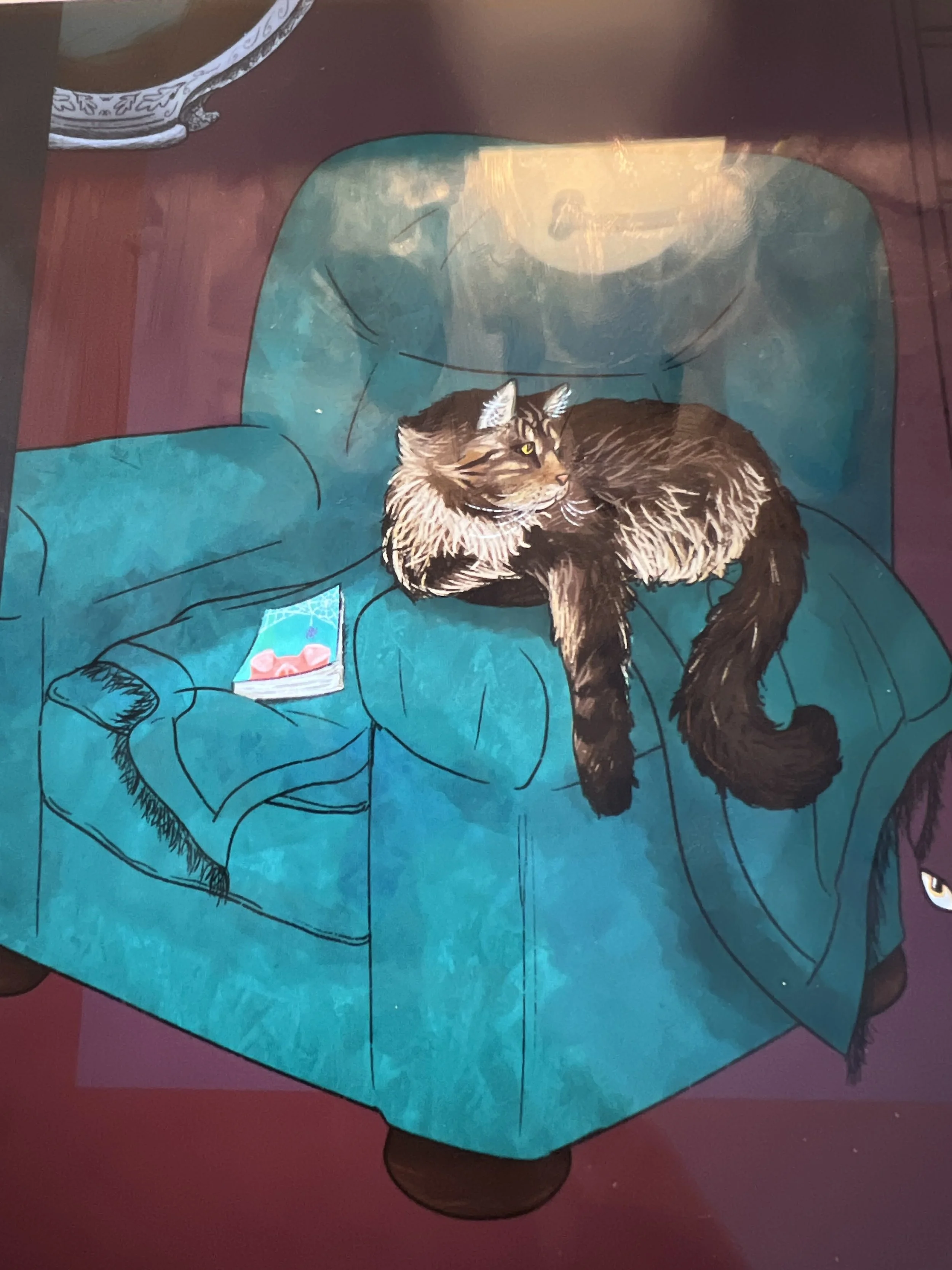ANYway. Congrats, you’ve made it to the end of another big stream of consciousness post, so here are pictures for your reward. Flowers and butterflies, Pippin being a basket boi, and a sneak peek at a detail from the book cover in progress.